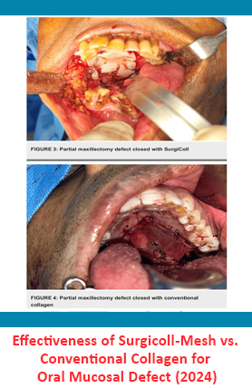 Surgicoll-Mesh is a biocompatible and sterilized Type-I collagen matrix for soft tissue & muscle flap reinforcement, Dural repair, Colorectal, urethral & vaginal Prolapse, pelvic floor reconstruction , urethral sling & third-degree Burn to accommodate the skin graft needs, knee replacement surgery & other orthopaedic procedures